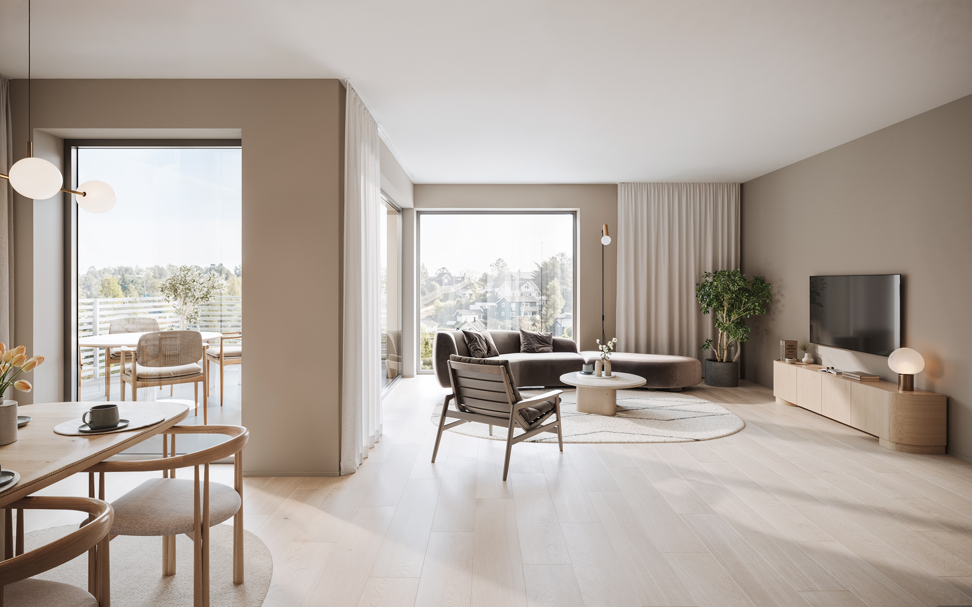 Leilighetene er utviklet med fokus på bokvalitet, praktiske løsninger og varig estetikk. Alle ligger på ett plan og får åpne oppholdsrom med store vindusflater som slipper inn mye dagslys. Dette er boliger som passer godt for voksne og par som ønsker en komfortabel og moderne hverdag i grønne omgivelser.