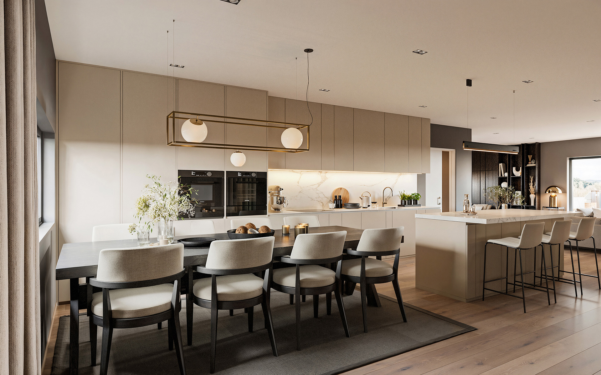 Velkommen til en ny, moderne og gjennomtenkt familiebolig i Fullhammersvingen 9. Her får du praktiske løsninger som favner hele familien. I første etasje ligger tre gode soverom, egen tv-stue, bad, vaskerom og teknisk rom — alt lagt til rette for en funksjonell og komfortabel hverdag. I andre etasje – et lyst, åpent oppholdsrom hvor stue og kjøkken flyter i ett, med store vindusflater og utgang til en romslig terrasse med pergola og glassrekkverk. Her kan du nyte utsikt, lys og godt med luft. Kjøkkenet er fra Sigdal, og peisovnen er en stilren Nordpeis Praha. Gjennomgående 1-stavs eikeparkett, downlights i alle tørre rom og baderom med store fliser gir et helhetlig og kvalitetsrikt uttrykk.