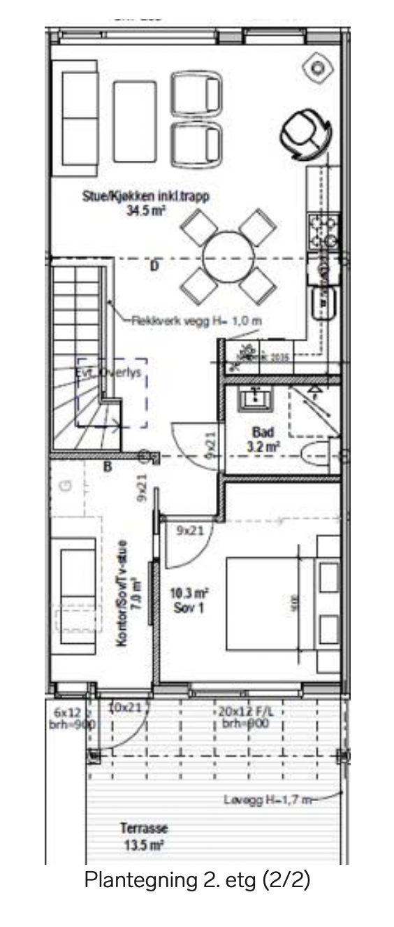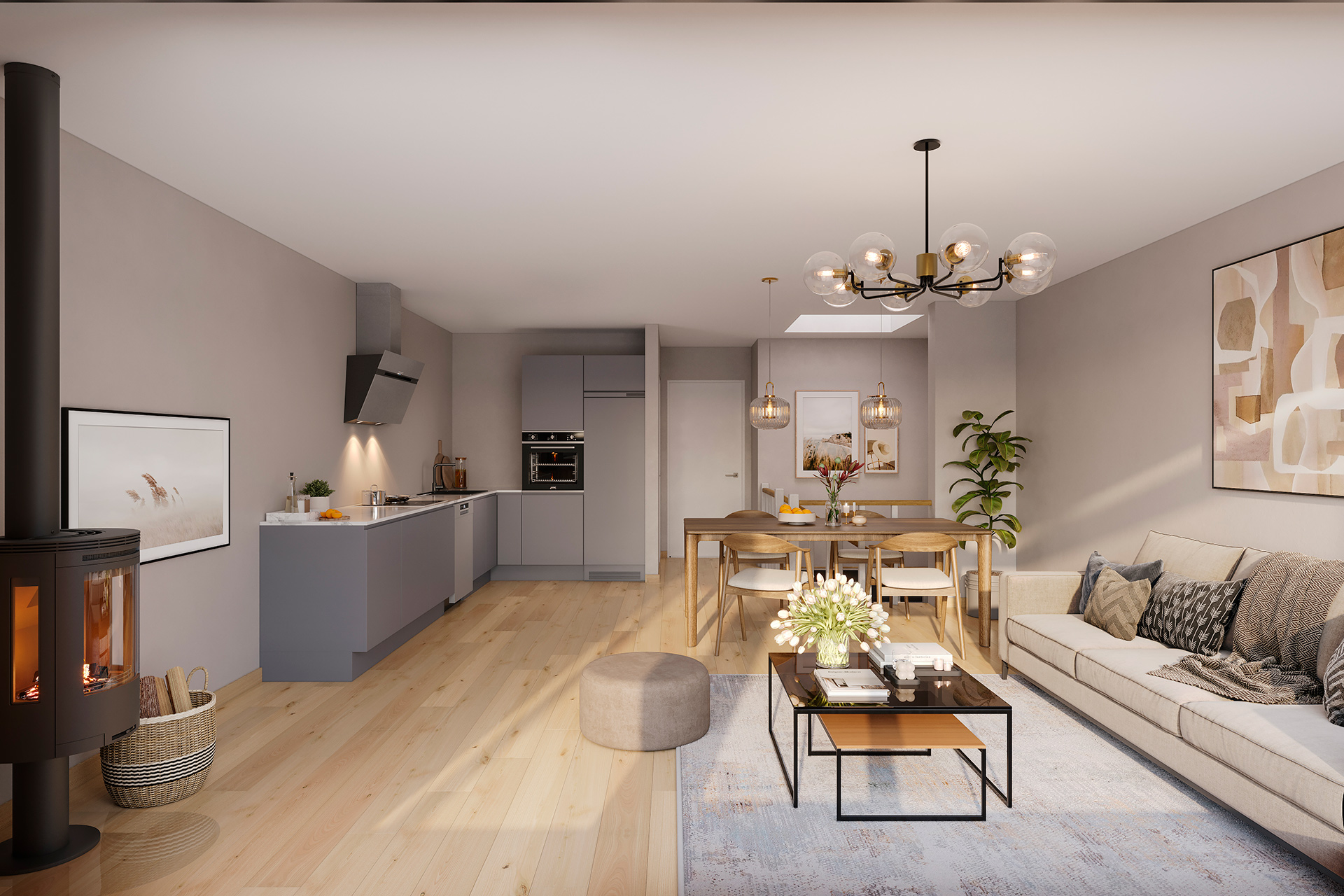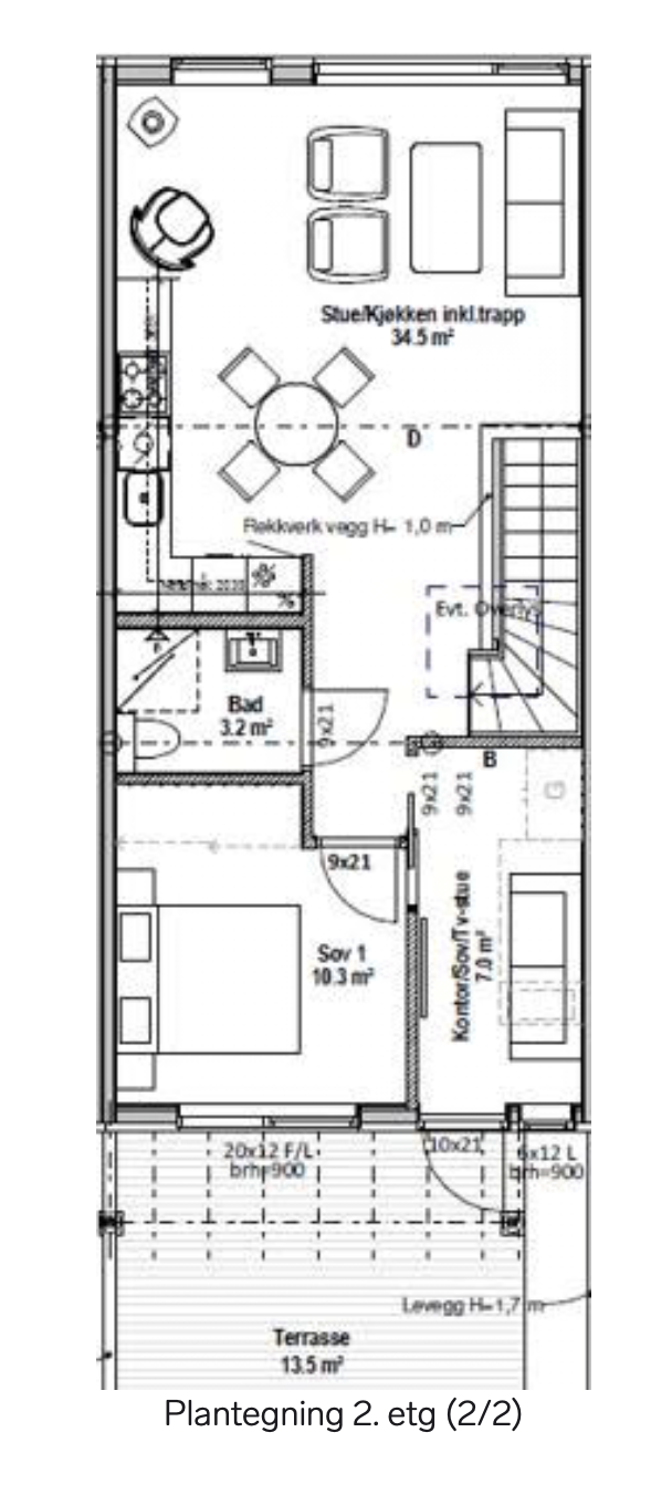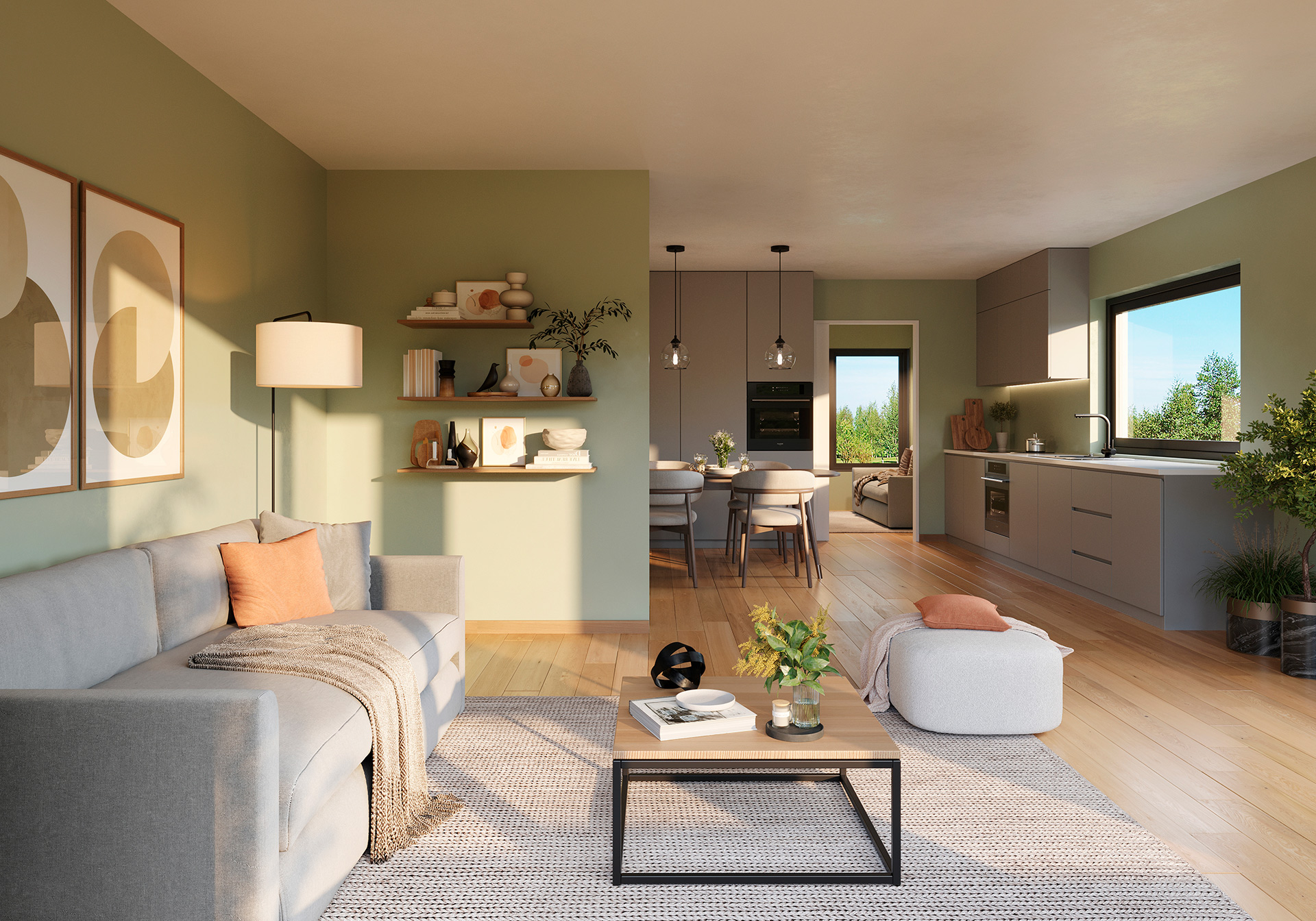 Boligene går over to etasjer og har lyse oppholdsrom, god planløsning og fleksible muligheter. I hovedetasjen finner du stue/kjøkken i åpen løsning, ett soverom og en TV-stue som enkelt kan brukes som ekstra soverom. Underetasjen rommer flere soverom, bad, separat WC og bod. Det er ulike planløsninger avhengig av plassering – se plantegninger for detaljer.